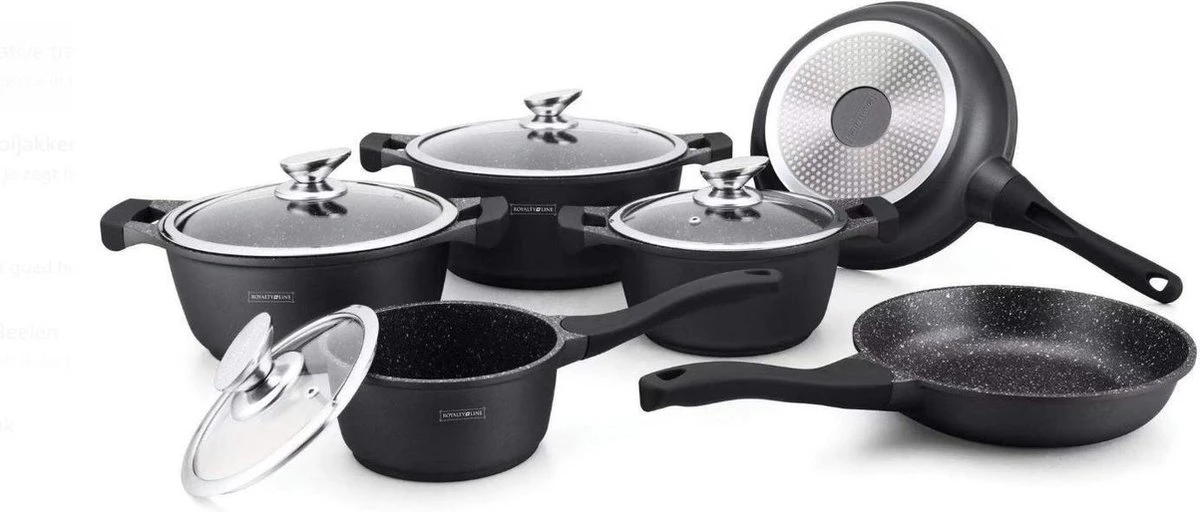 Heb jij ook jouw keukenkastjes vol met allerlei verschillende pannen? Dan is het misschien tijd deze mooie set in huis te halen. De pannen hebben een strak design en zijn verkrijgbaar in 4 mooie kleuren. Aan de binnenkant zijn alle pannen voorzien van een marmer coating. Dit zorgt niet enkel voor een moderne en stoere look, het voorkomt ook dat eten aan de bodem blijft plakken en dat je de pannen na gebruik super makkelijk weer schoon kunt maken. Tevens hoef je hierdoor zelfs geen boter te gebruiken. Dit maakt het gebruik van deze pannen ook nog eens super gezond.