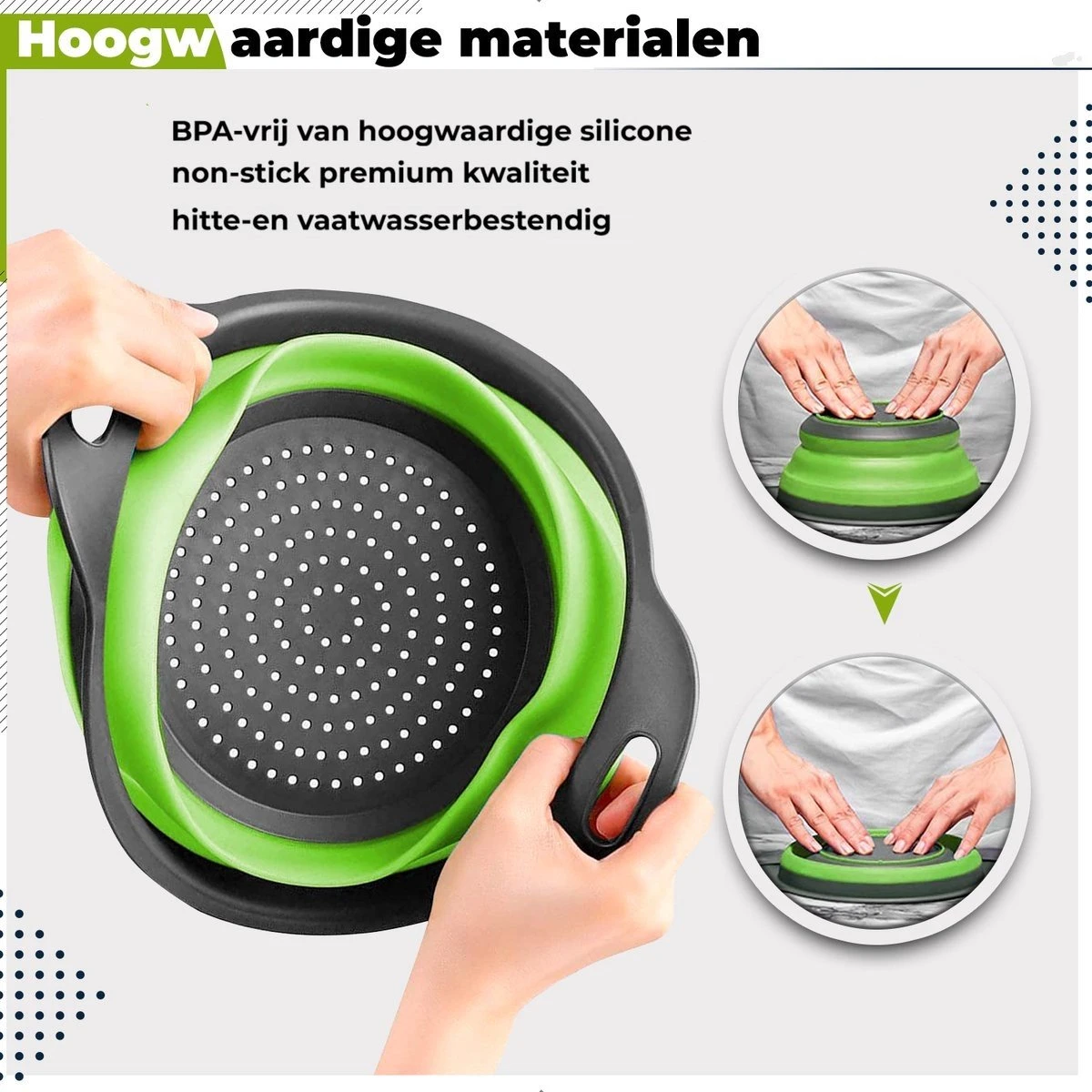 Deze vergieten zijn de perfecte oplossing voor kleine keukens en overvolle kasten, ze zijn slechts 2.8 cm opgevouwen toestand.