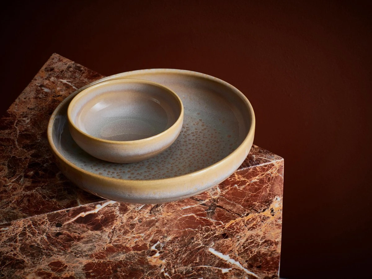 Breng nu de bohemian stijl naar uw tafelsetting met Tabo. Tabo is een Europees doorontwikkeld product vervaardigd uit kwaliteitsvol stoneware en afgewerkt met een opvallend reactief glazuur, waardoor elk item anders en exclusief is. Deze veelbelovende collectie met opstaande randen is verkrijgbaar in maar liefst 2verschillende kleuren: