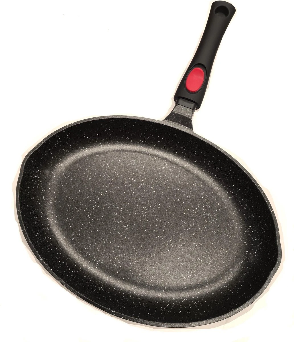 Deze Satoshi Vispan is ideaal om de lekkerste visgerechten in klaar te maken. De pan heeft een ovale vorm met anti- aanbak marmercoating. Door de afneembare handgrepen is hij ook ideaal om in de oven te zetten. De pan is geschikt voor alle warmtebronnen, waaronder dus inductie.