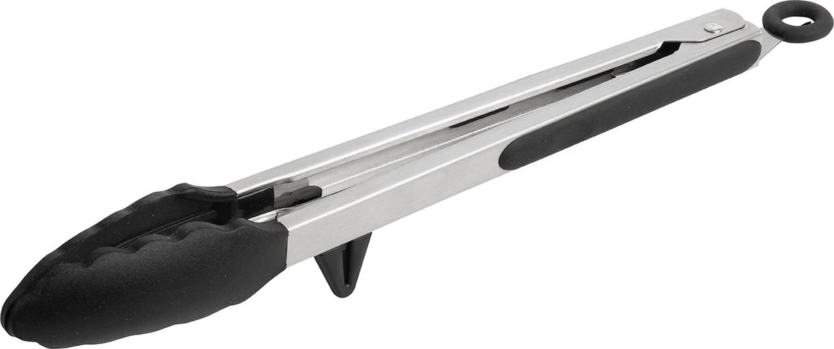 Doormiddel van het inknijpen van de tang en het omhoog trekken van het ophangoog zet u de tang op slot. Wanneer u deze tang inknijpt en het ophangoog naar beneden duwt dan opent u de tang weer. Makkelijk in gebruik en handig om op te bergen! Deze tang is hittebestendig tot 230 graden en kan worden gereinigd in de vaatwasser. Het handvat is voorzien van een siliconen rand wat zorgt voor extra grip en gebruikscomfort.