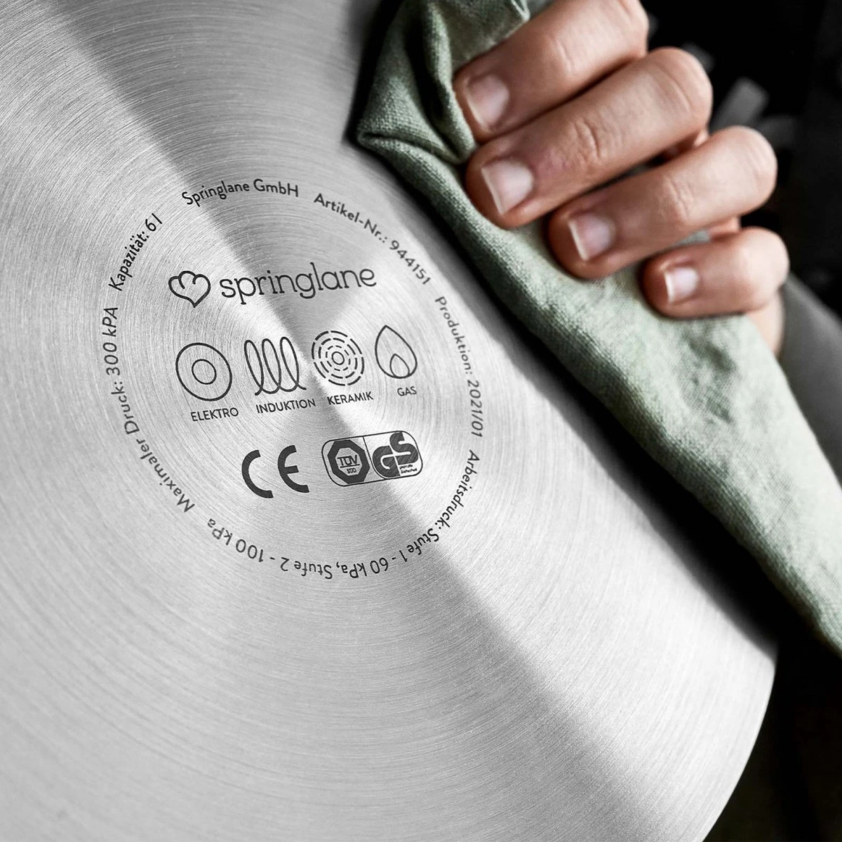 Het hoogglans gepolijste roestvrij staal overtuigt niet alleen door zijn chique uiterlijk: de aluminium kern van de capsulebodem, die met 1.600t druk door middel van ‘impact bonding’ wordt geperst, geleidt de warmte optimaal naar jouw ingrediënten met een hoge energie-efficiëntie. Om je volledig flexibel te laten genieten van je snelle lekkernijen, kan de pan worden gebruikt op alle soorten fornuizen, inclusief inductie. Als je jouw culinaire hoogstandjes direct na de bereiding wilt serveren, kun je de snelkookpan veilig vervoeren met behulp van de praktische tegengreep op de rand van de pan.