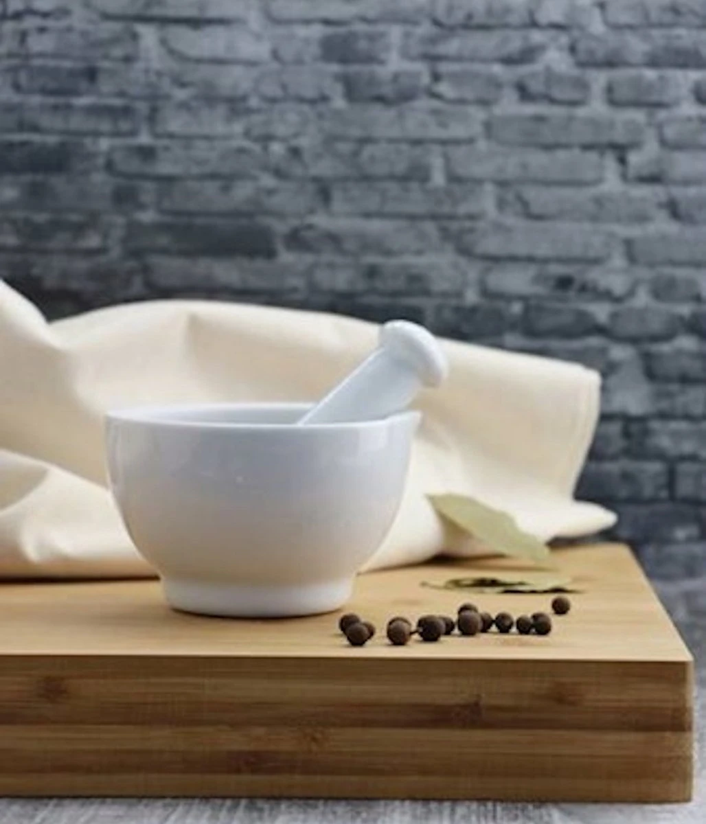 Svenska Living vijzel wit met stamper van keramiek D8 cm. Deze vijzel is ideaal voor het fijnmaken en malen van verse en gedroogde specerijen en kruiden. Afmeting: ca. D8 x H5 cm. Materiaal: gepolijst keramiek.