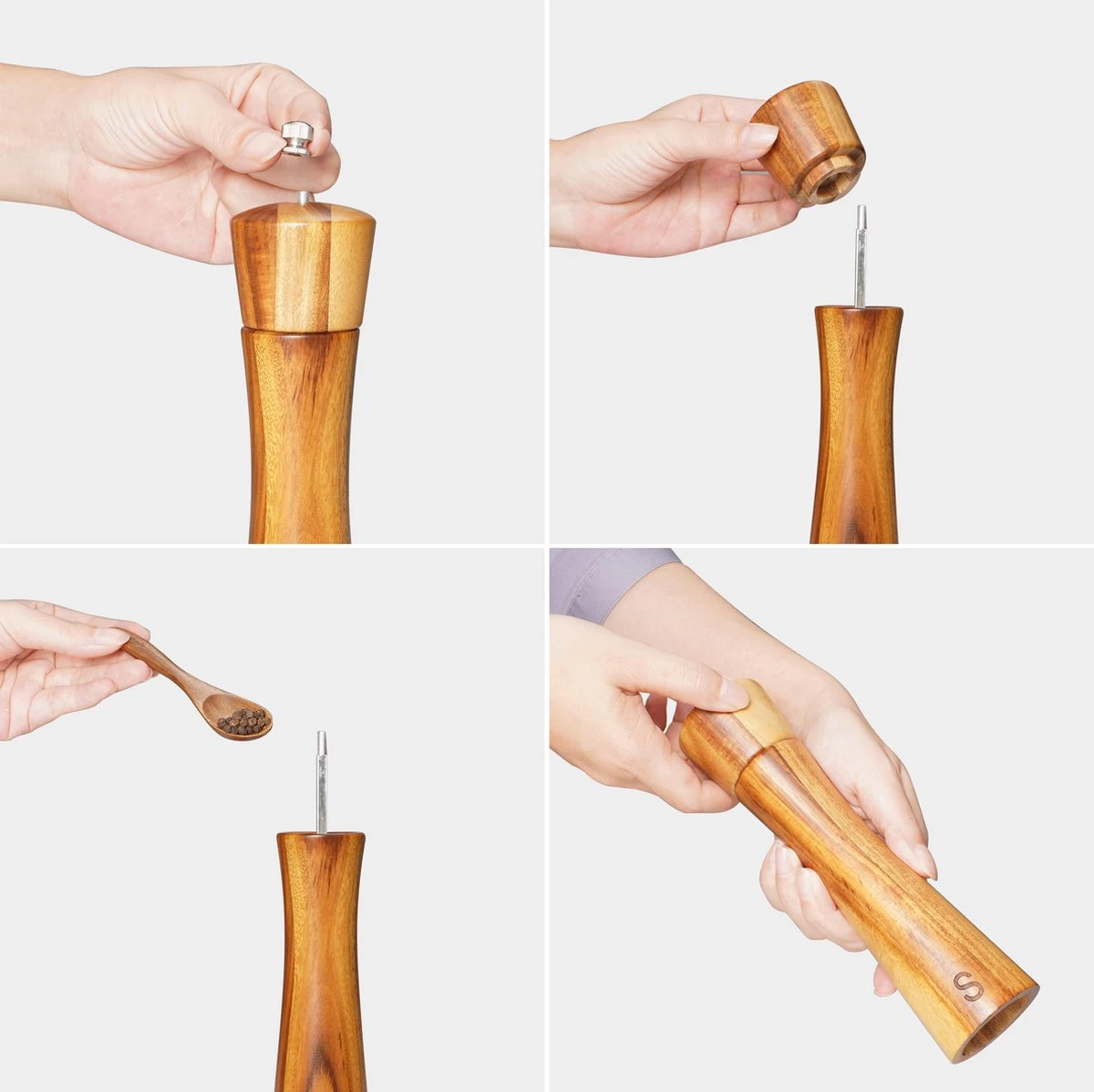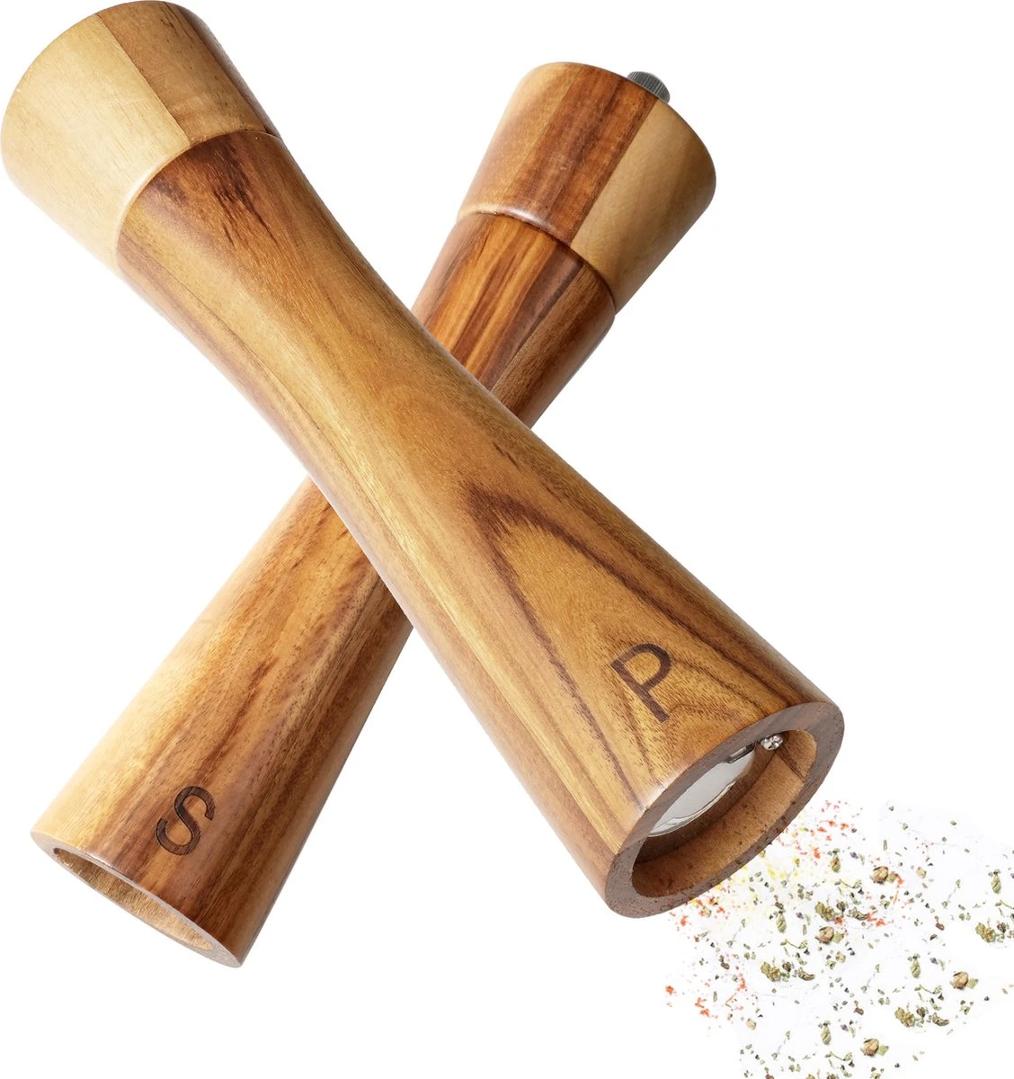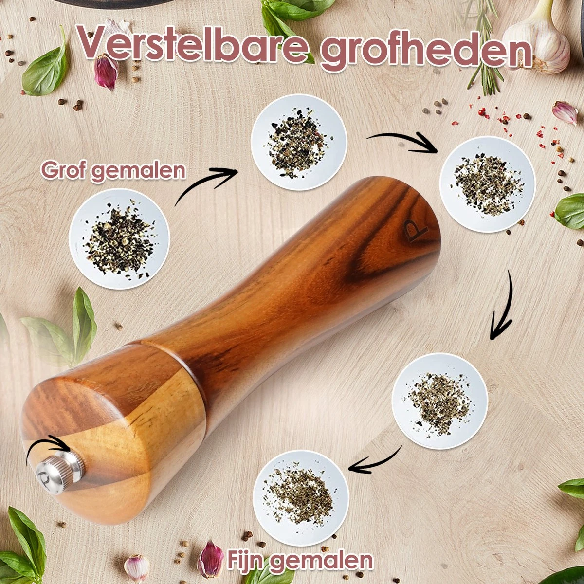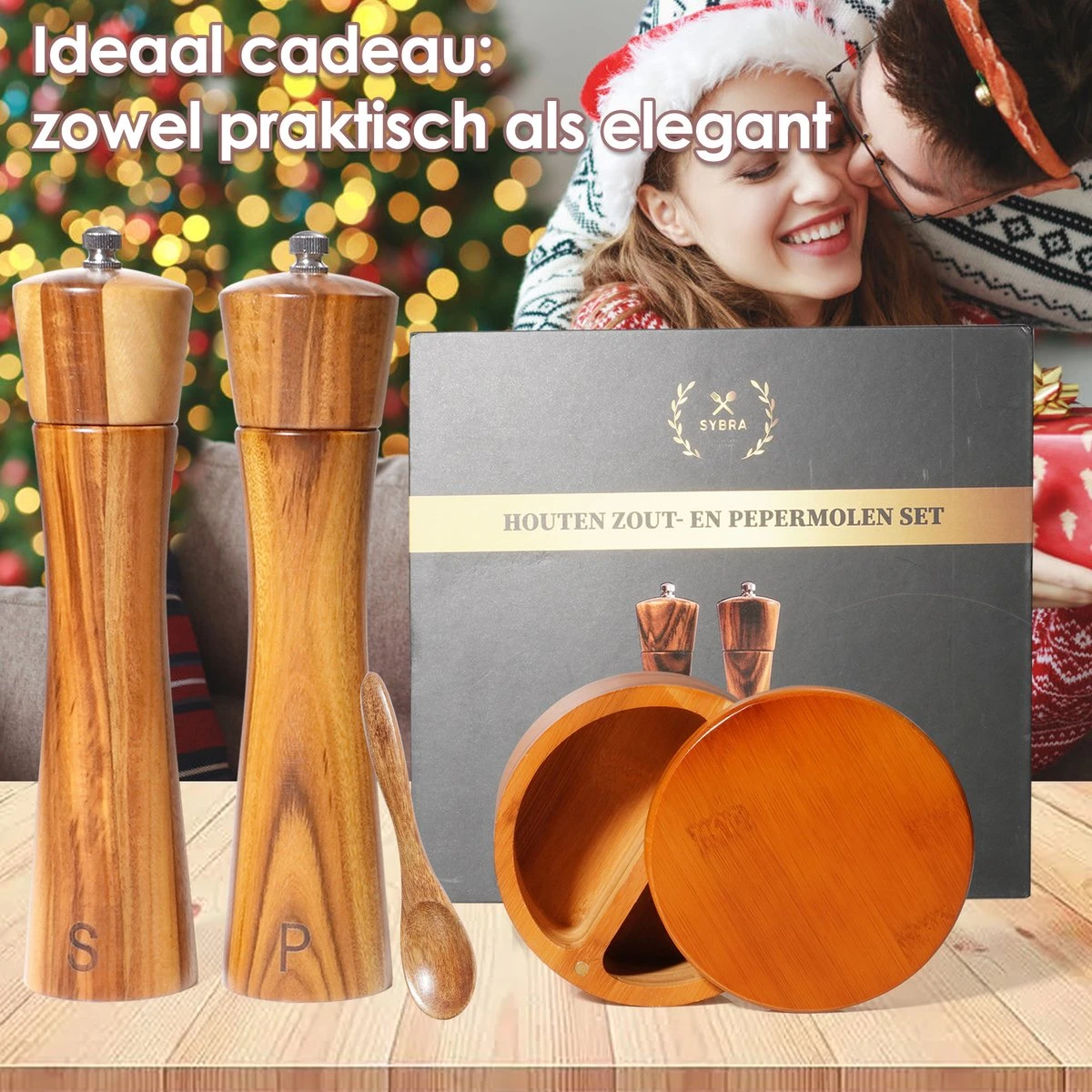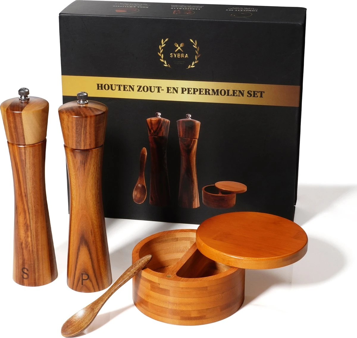 Op zoek naar een stijlvolle en duurzame peper- en zoutmolen set? Deze luxe set van Sybra is dé peper- en zoutmolen set voor iedere keukenprins(es). De set is handgemaakt van kwalitatief hoogstaand en duurzaam acacia hout. Een absolute eyecatcher in jouw keuken!
