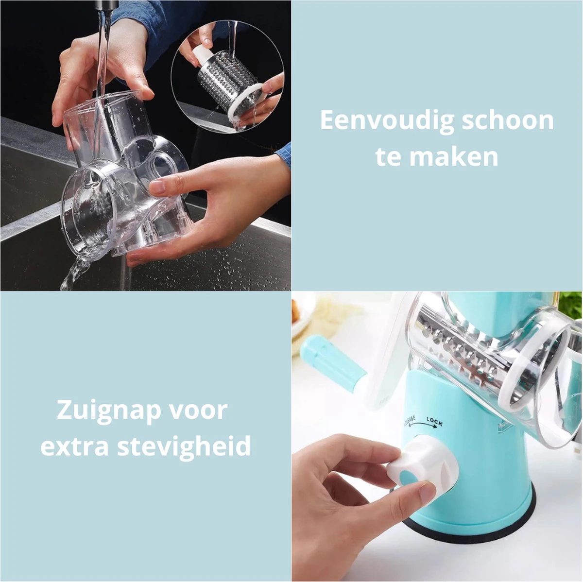 Doormiddel van de 3 verschillende inzetstukken, verander je in één handomdraai van spiraalsnijder naar rasp. Op deze manier wordt koken niet alleen efficiënter, maar zeker ook een stuk leuker! Wat kook jij vanavond?