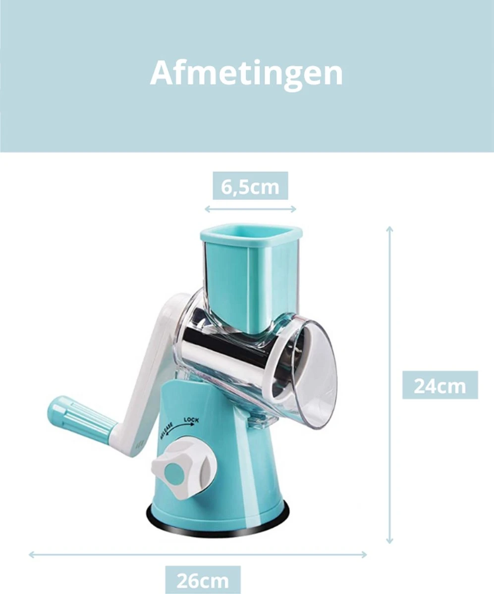 De TidyHome Spiraalsnijder beschikt over 3 verschillende soorten inzetstukken, zodat deze gebruikt kan worden voor meerdere doeleinden. Voorbeelden hiervan zijn courgetteslierten, geraspte kaas en fijngemalen koekjes.
