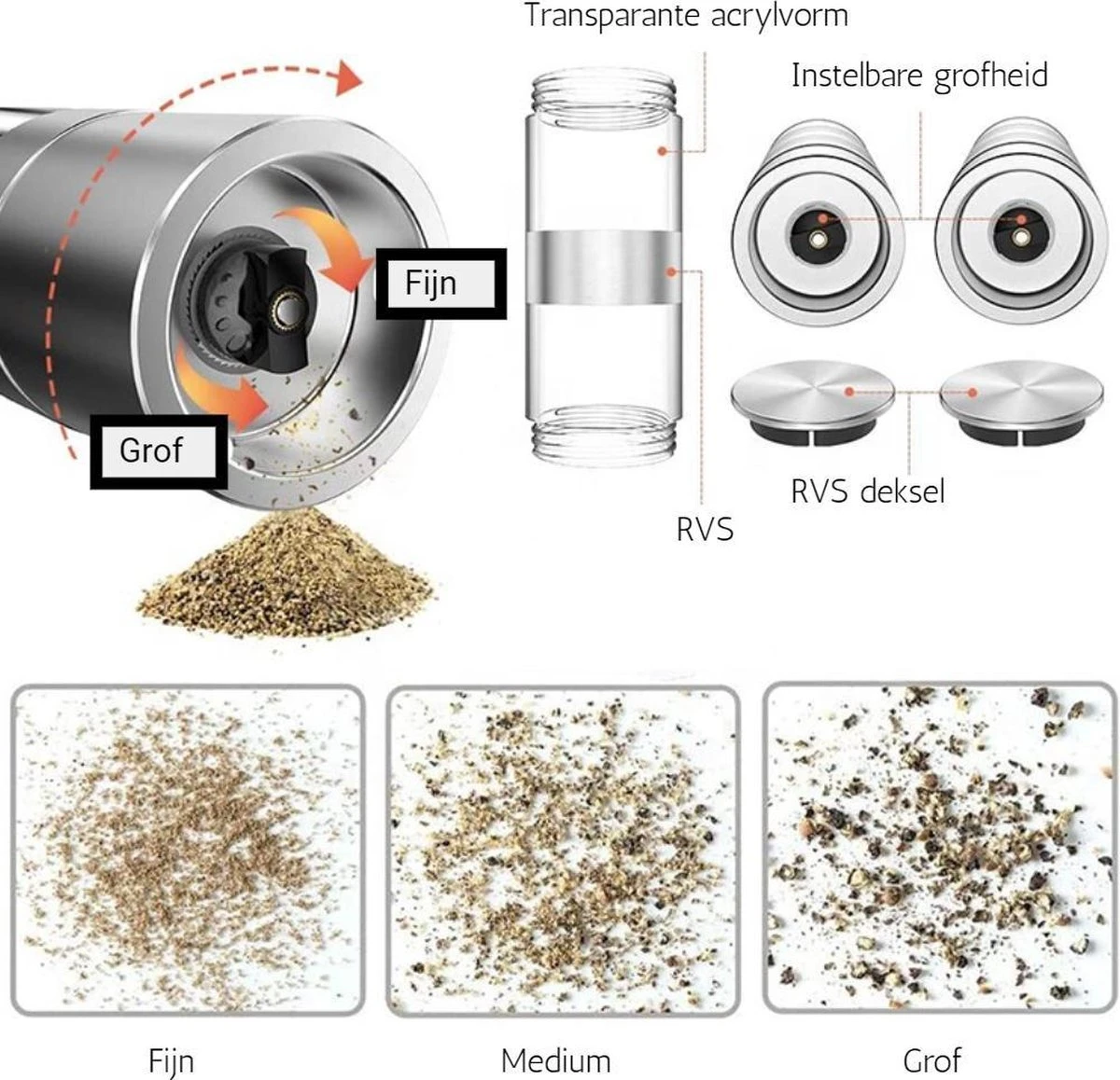 - Multifunctioneel: onze Tolussa 2 in 1 peper- en zoutmolen heeft een instelbare maalgraad. Hiermee kun je de korrels naar wens malen, van fijn tot grof. Ideaal voor al jouw gerechten die een personal touch nodig hebben met peper en zout!