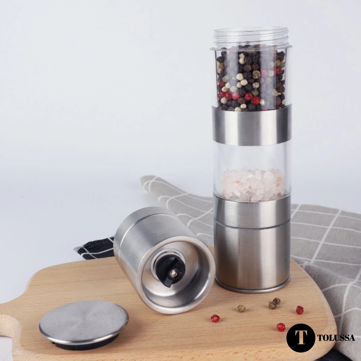 - Alles bij de hand: heb je de pepermolen op de eettafel staan, maar ben je de zoutmolen vergeten? Of andersom? Dit probleem kan niet meer voorkomen omdat de molen zowel peper als zout bevat!