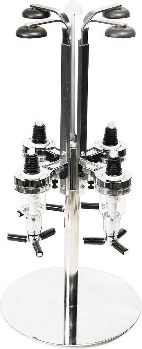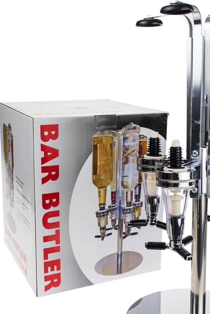 De Bar Butler 4 Shot Dispenser mag niet ontbreken in je thuis bar. De Bar Butler is een dispenser voor flessen van 0,7 tot 1 liter, geeft een perfect shot van 29 ml en hervult zich automatisch voor het volgende shot. Plaats de shot maatbeker in de fles en daarna in de Bar Butler. De Shot Dispenser is een carrousel geschikt voor maximaal 4 flessen. De Bar Butler wordt geleverd met een mix lepel en is een geweldig item dat elk feest compleet maakt.
