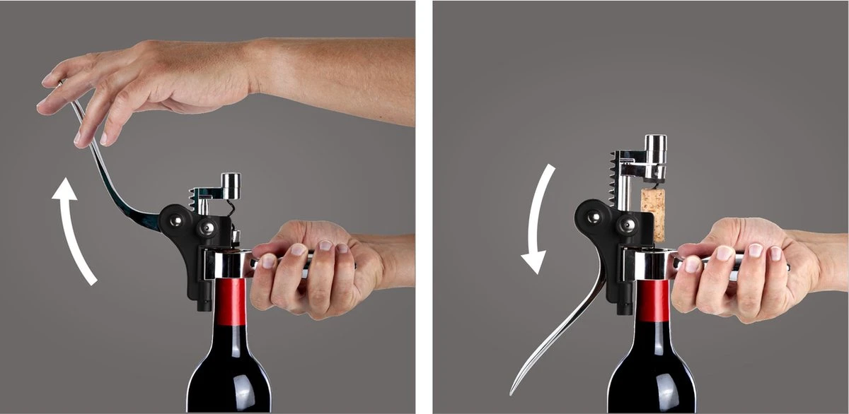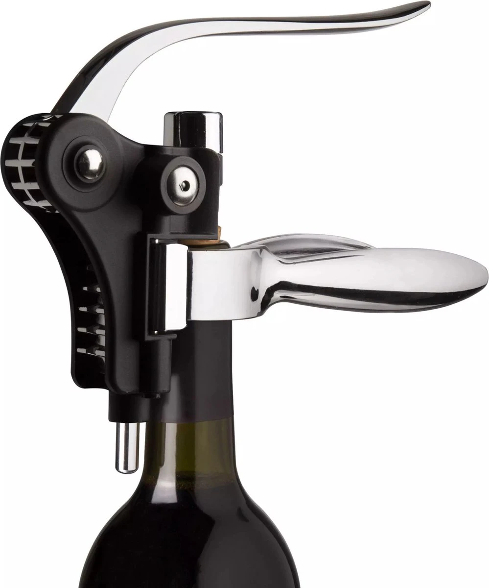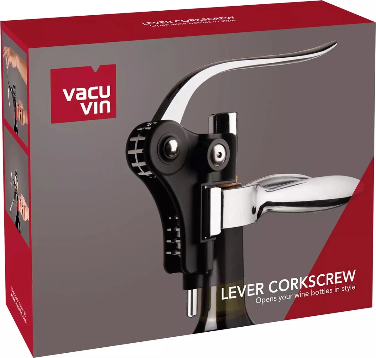 Deze elegante kurkentrekker van Vacu Vin is een wijnflesopener voor elke gelegenheid en elke situatie. Het is de flesopener kurkentrekker bij uitstek voor sommeliers en wijnkenners. De kurkentrekker heeft een speciaal horizontaal ontworpen frame met een tandwiel- en hefboommechanisme. Deze flesopener is eenvoudig te bedienen en vereist zeer weinig kracht om een fles wijn te openen zonder de kurk te beschadigen.