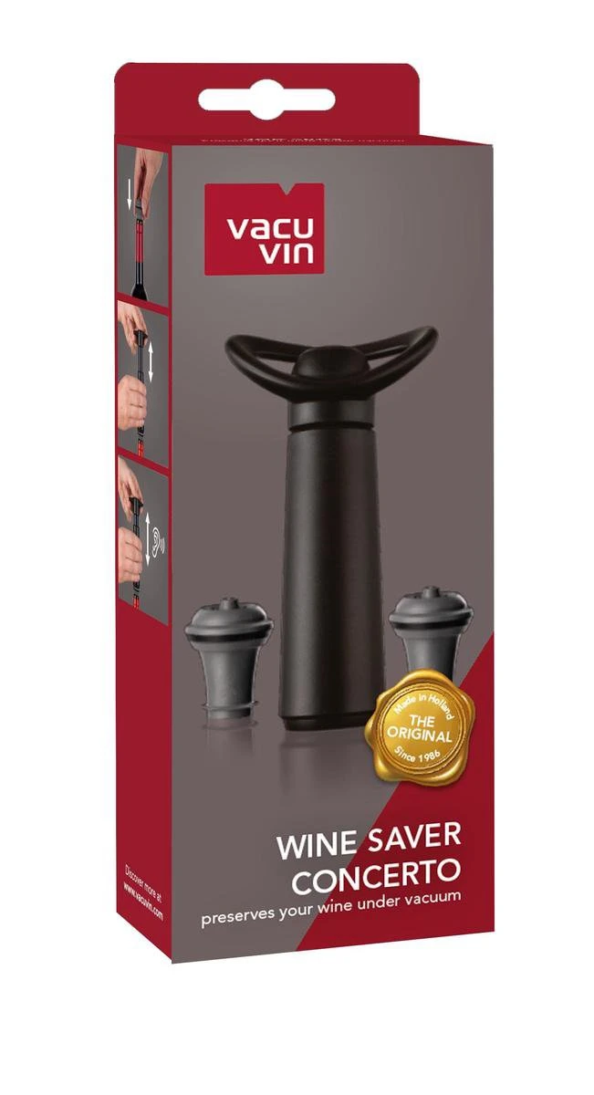 Vacu Vin Wine Saver Concerto – Vacuüm Wijnpomp Inclusief 2 Wijnstoppers – Zwart
