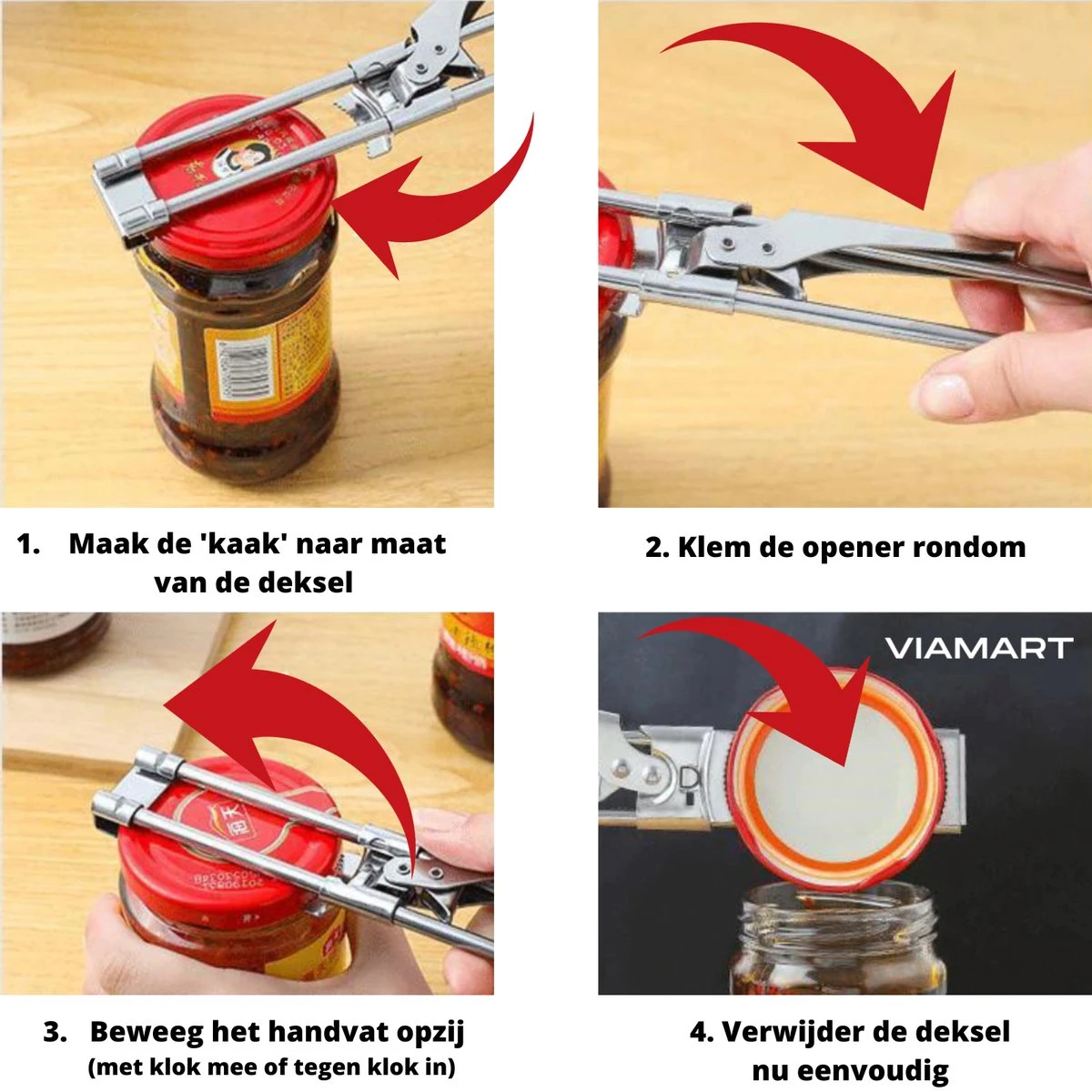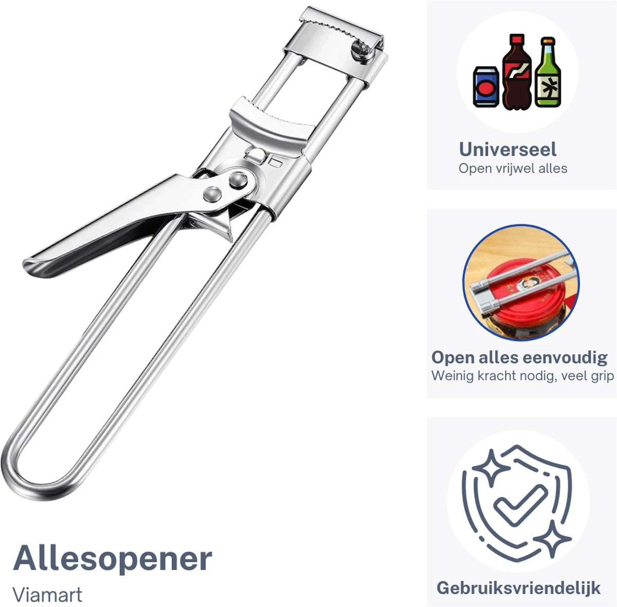 Viamart – Allesopener – Blik, Pot, Fles, Dopje, Deksel Opener – Ideaal Voor Ouderen En Bij Lichamelijke Klachten – RVS