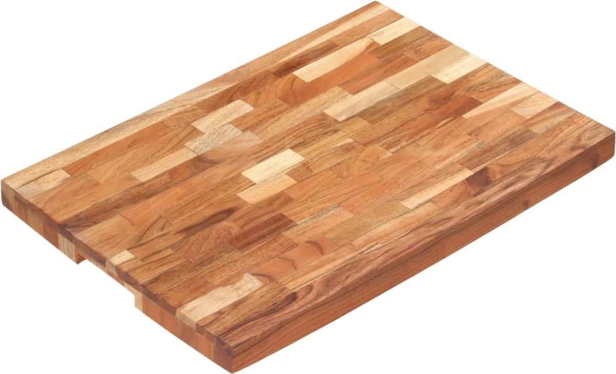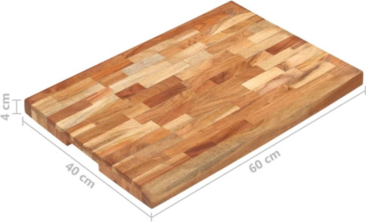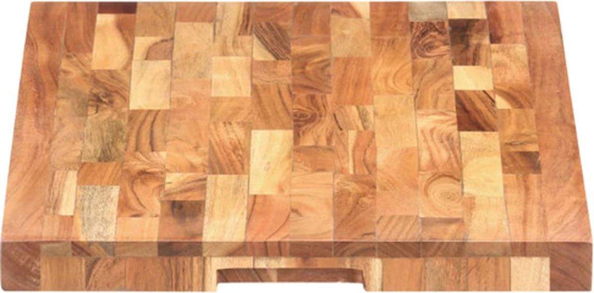 Ons slagersblok heeft een dikte van 4 cm en is een stevig oppervlak om als een professional kruiden, groenten, vlees en vis te hakken! Het blok is gemaakt van massief acaciahout, wat een tropisch hardhout is. Het vakmanschap en de prachtige houtnerven zorgen ervoor dat elke snijplank uniek is. Hij is gemakkelijk op te tillen door de kenmerkende vingergroef.