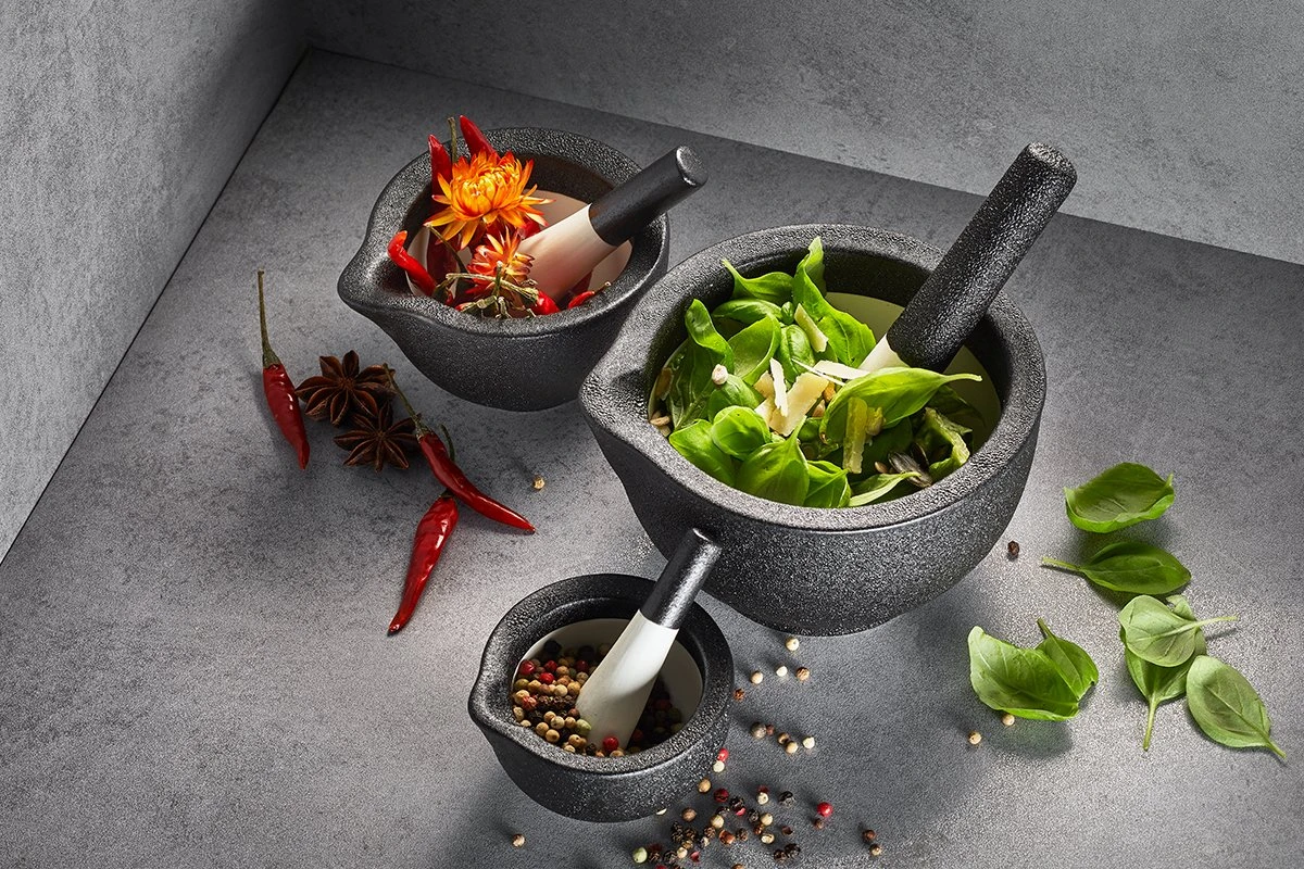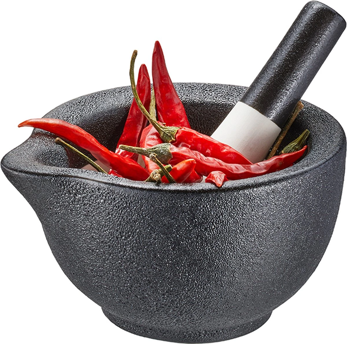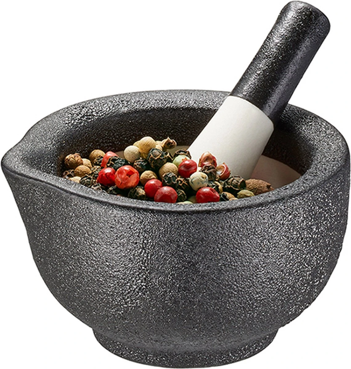 Met de Grino vijzel van Gefu heb je altijd het juiste metgezel bij de hand om al je kruiden goed tot hun recht te laten komen. De stijlvolle vijzel wordt met de hand gemaakt en is voorzien van een ruwe binnenzijde om je iedere keer een perfect resultaat te geven. Samen met de stamper vermaal je moeiteloos peperkorrels, zoutkristallen, verse kruiden en meer. Het maken van verse pesto of lekkere kruidenmengsels is vanaf nu een koud kunstje. Verder is de vijzel voorzien van een schenktuit en een antislip voet waardoor het gebruik extra makkelijk wordt. Na gebruik kunnen de onderdelen worden schoongemaakt in de vaatwasser.