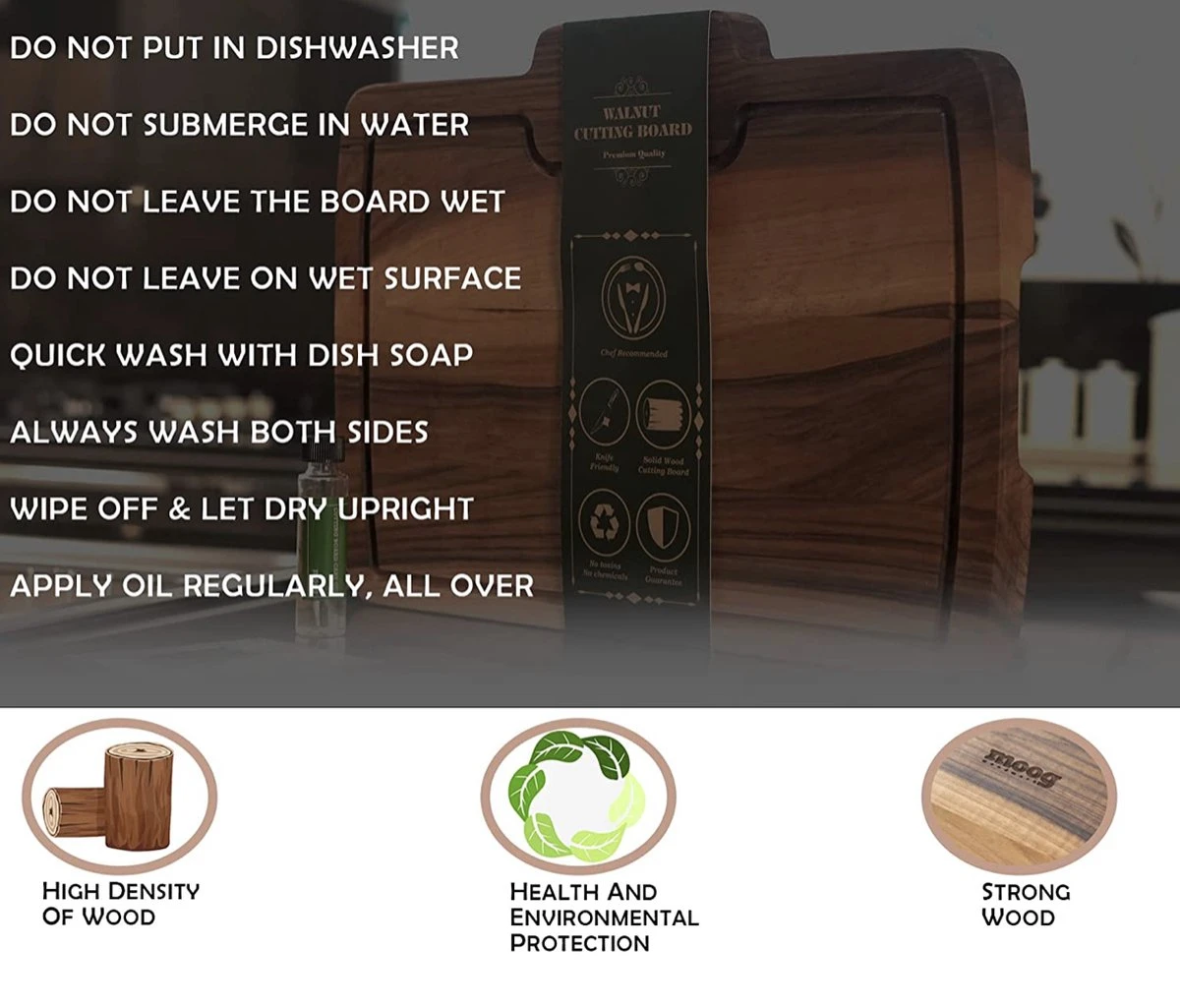 HET IS DE INVESTERING WAARD: Onze walnoten snijplank is een waardevolle investering voor elke keuken. Nadat er sneden zijn gemaakt in ons walnotenblok, trekken de vezels weer samen om hun oorspronkelijke positie op een zelfherstellende manier terug te nemen, wat resulteert in een serieuze levensduur, zodat uw MOOG-bord voor toekomstige generaties kan worden doorgegeven. Plastic planken kunnen komen en gaan, maar de onze is hier voor de lange termijn.
