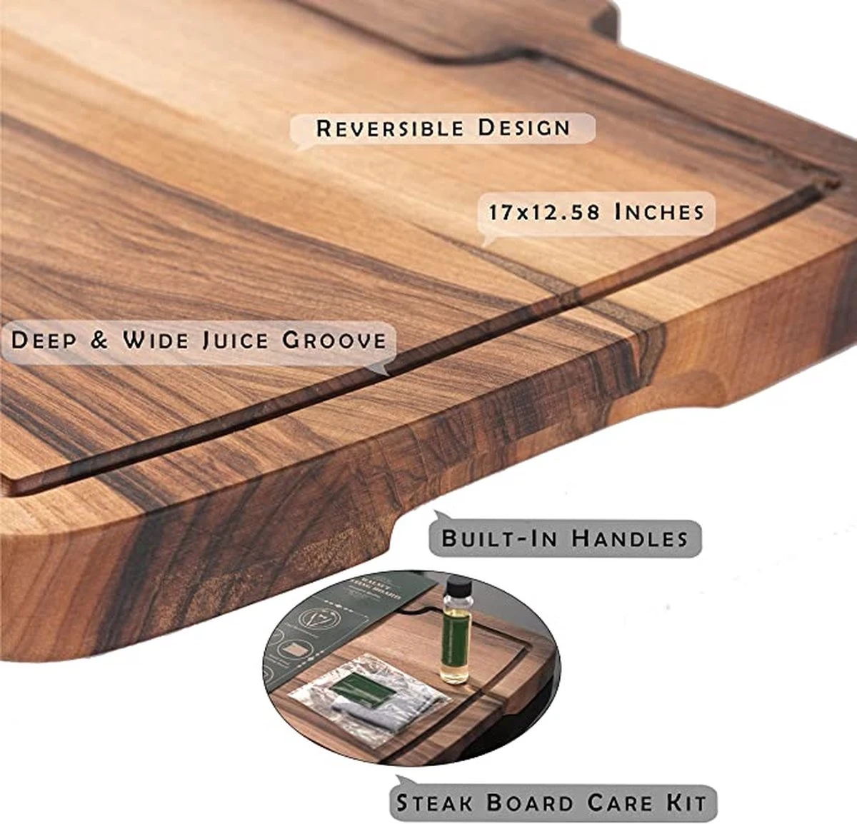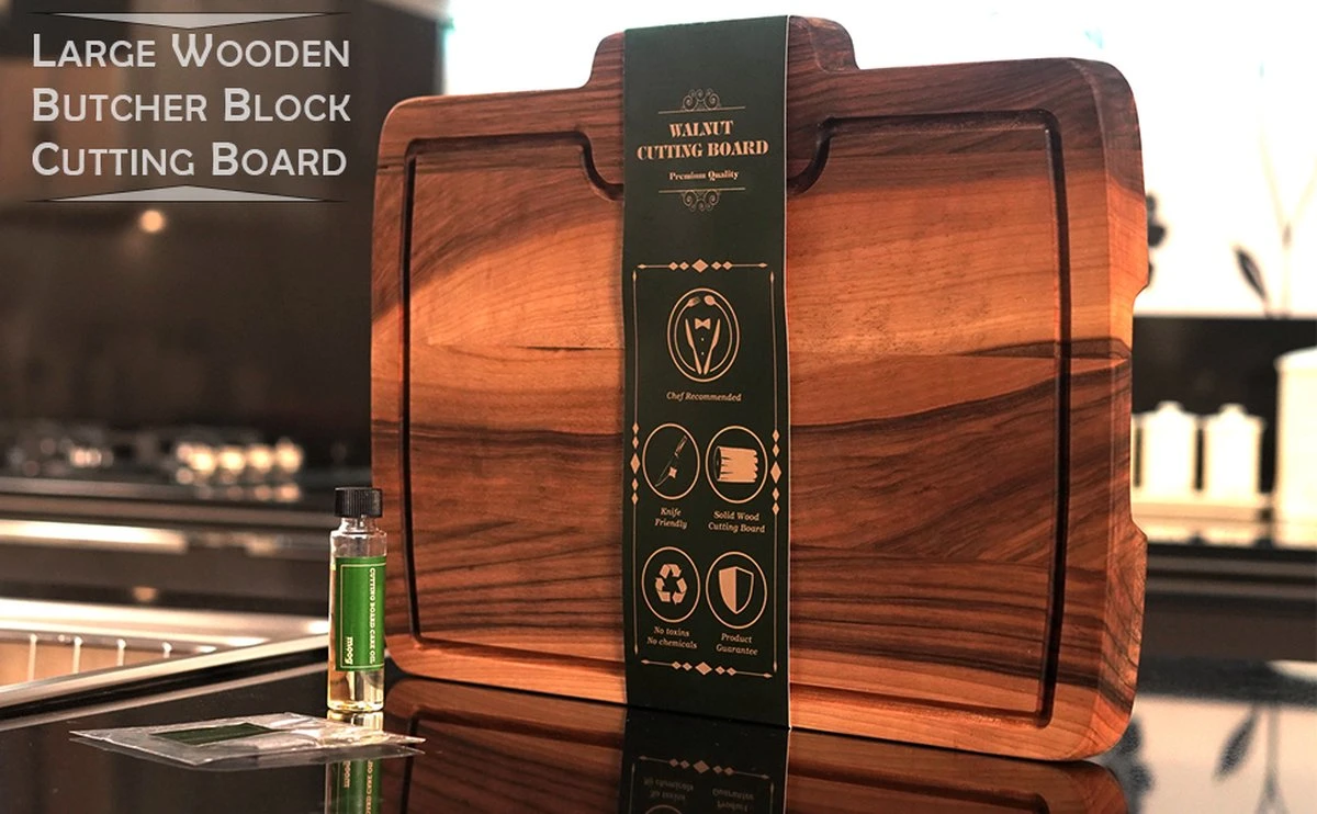 | Aanvullende functies | Walnoot snijplanken – grote dikke walnoten snijplank met sapgroef (17 "x 12.6") omkeerbare grote houten snijplank – zwarte walnoot snijplank voor keuken – omkeerbaar met sapgroef |