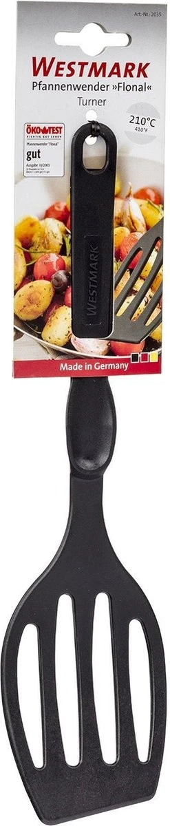 Draai je stukje vlees of vis om met deze Flonal bakspatel van Westmark. Deze spatel heeft dé perfecte vorm, zodat je eenvoudig ieder ingrediënt kunt draaien in de pan. Je pan zal ook niet beschadigen door de spatel, hij is namelijk gemaakt van kunststof. De bakspatel is bestand tegen een temperatuur van 210℃ en is te reinigen in de vaatwasmachine. De afmeting van deze bakspatel is 28,9 x 7,2 x 2 cm.