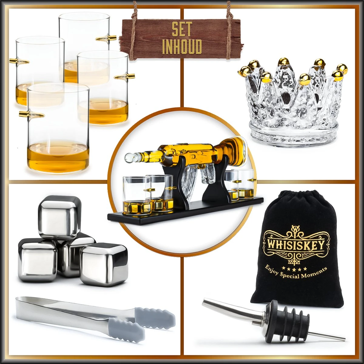 LET OP: De set wordt geleverd exclusief whiskey.