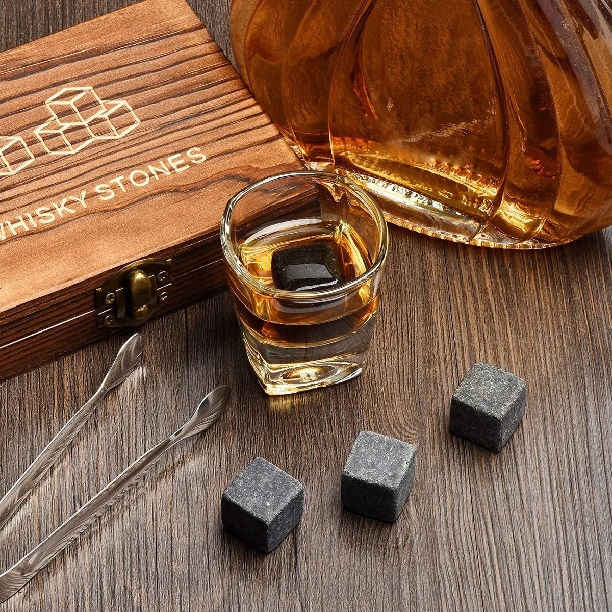 Deze luxe whiskey stenen van natuursteen zijn ijsklontjes die niet smelten, geen smaak afgeven, maar wel je drankje koud houden. Hierdoor blijft de whiskey of andere drank puur van smaak.