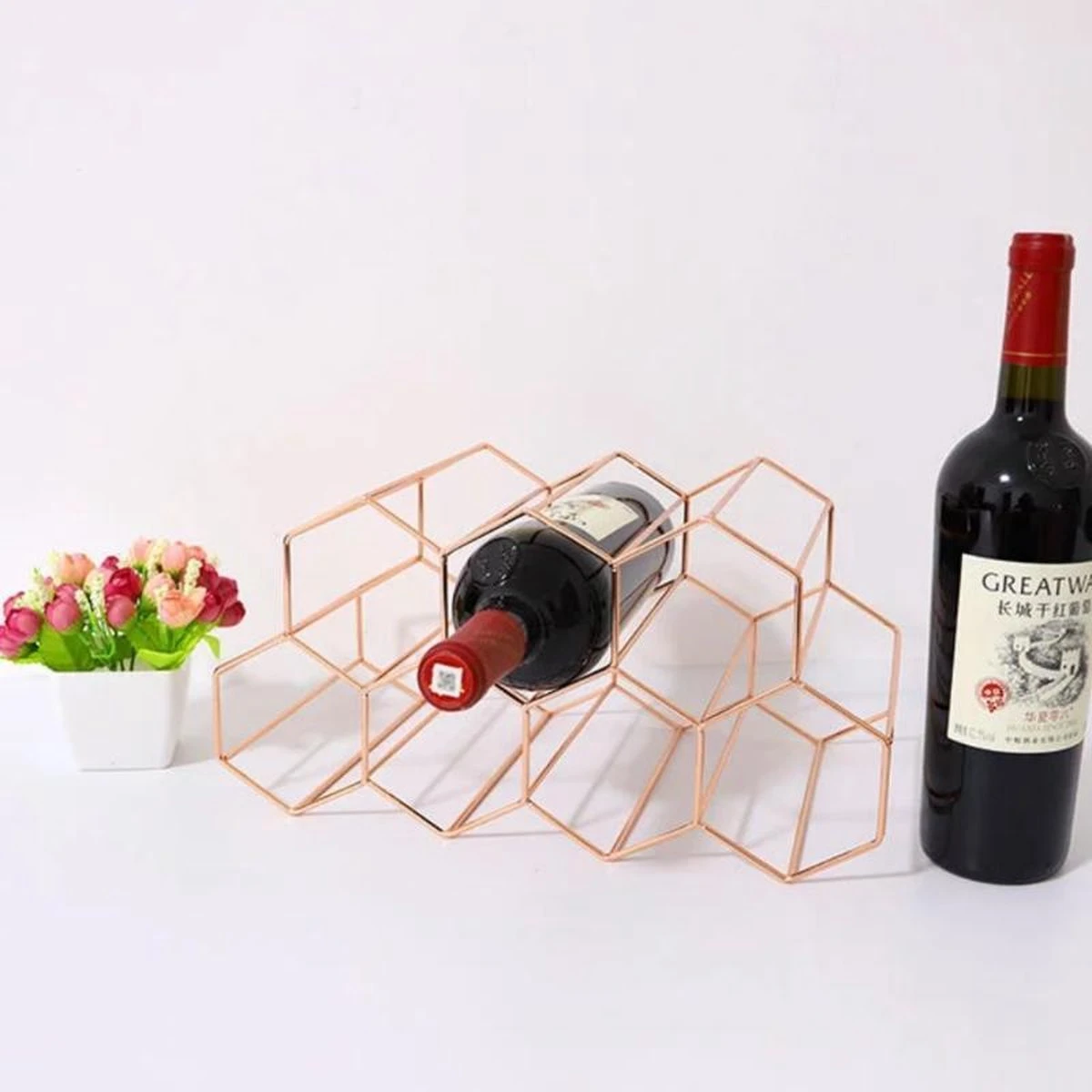 ➕ 7 hexagon vakken, hele rek geschikt voor 9 flessen