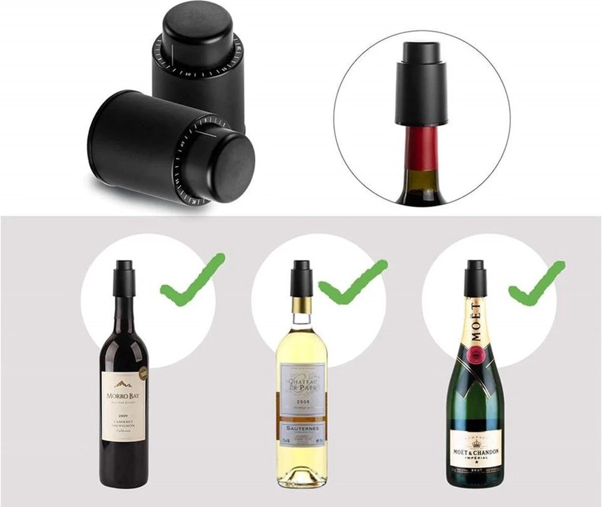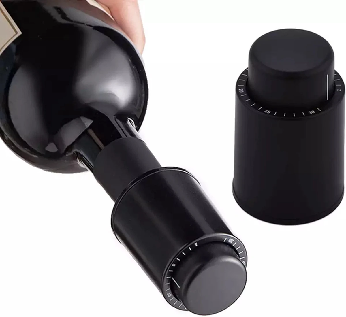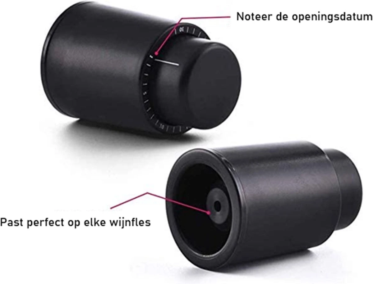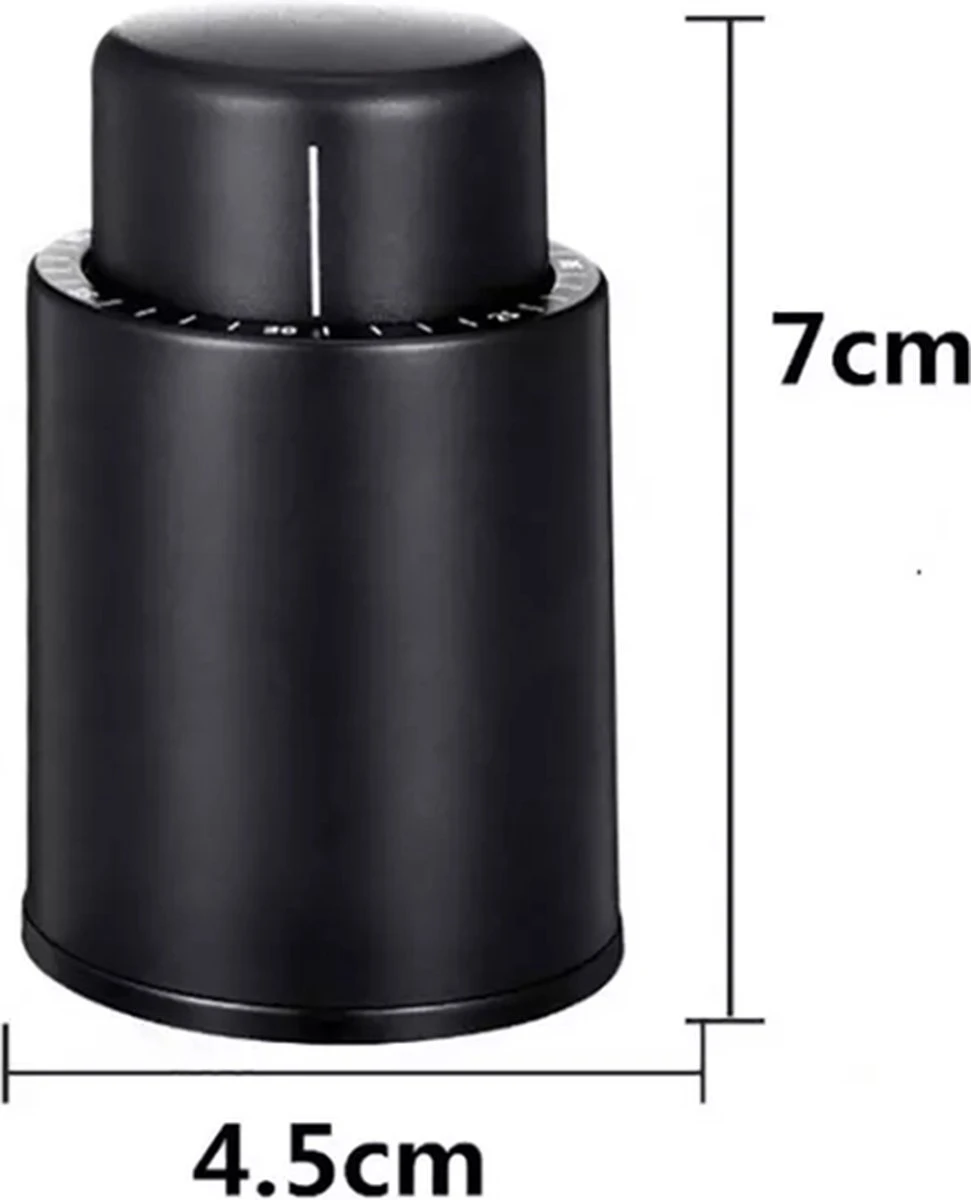 Deze wijn vacuüm pomp is perfect om geen wijn meer te verspillen. Elke keer toch zonde om een net geopende fles wijn weg te gooien. Maar met deze vacuüm pomp is dat verleden tijd. Het werkt alsvolgt, stel de datum van het moment dat u de fles opent in met de draaiknop en plaats daarna de stopper. Druk vervolgens meermaals op de bovenkant van de dop om alle lucht te verwijderen uit de fles. Zodra u de dop niet goed meer kunt indrukken betekent dit dat er genoeg lucht uit de fles is verwijderd.