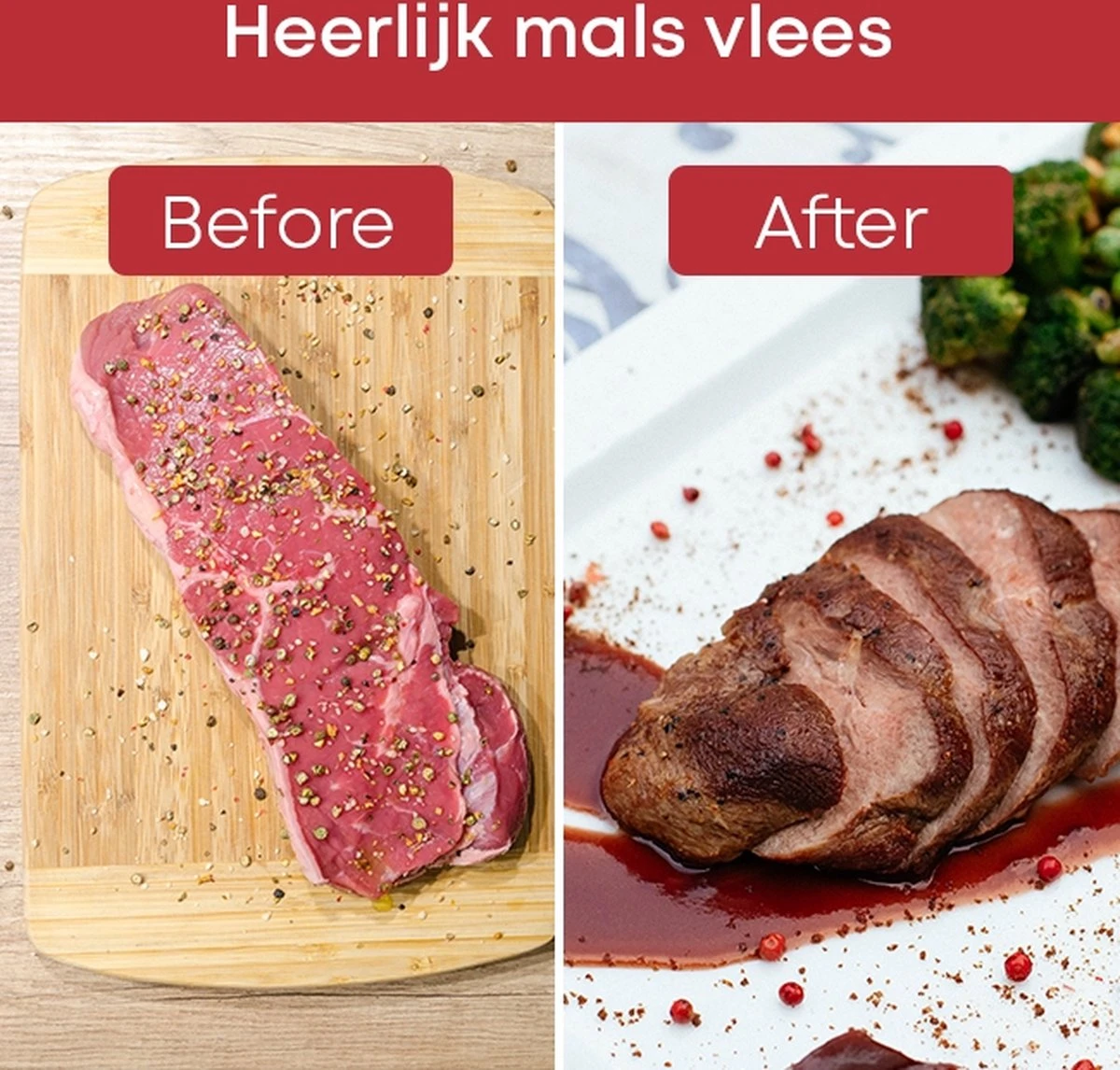 - Kruiden en marinades worden na bewerking met de vleeshamer (een vleesprikker), beter opgenomen