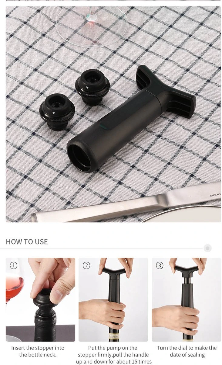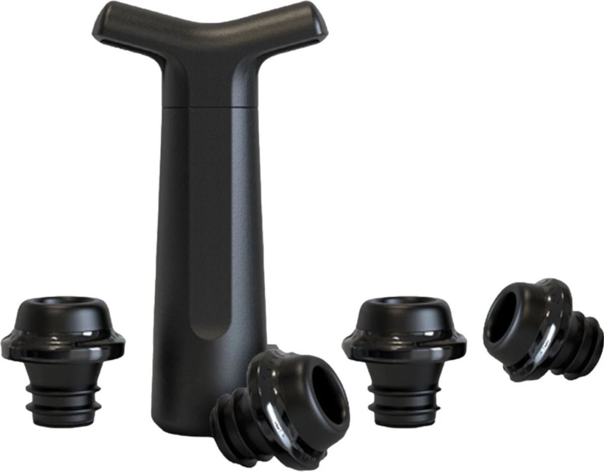 Plaats de wijnstop in/op de fles. Daaroverheen zet je de vaccuumpomp. Pomp op en neer tot het niet meer gaat. Ongeveer 15 keer en hierna is de fles afgesloten.